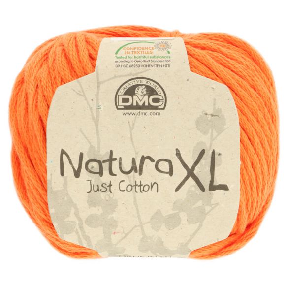 DMC Natura Just Cotton XL is a combed cotton yarn with a lovely matte finish. The yarn is made up of ten loosely twisted threads, which makes it not only thick, but extremely soft to the touch. It is particularly suitable for knitting or crocheting airy tops, sweaters and dresses in no time. This yarn is also great for creating all sorts of (home) accessories. This yarn is made from 100% cotton and is available in several colours. Washable up to 30ᵒC. The recommended crochet hook size is 6.00-7.00mm, while for knitting needles it is 8.00-9.00mm. One ball of DMC Natural XL weighs 100 grams and holds 75 metres of yarn.