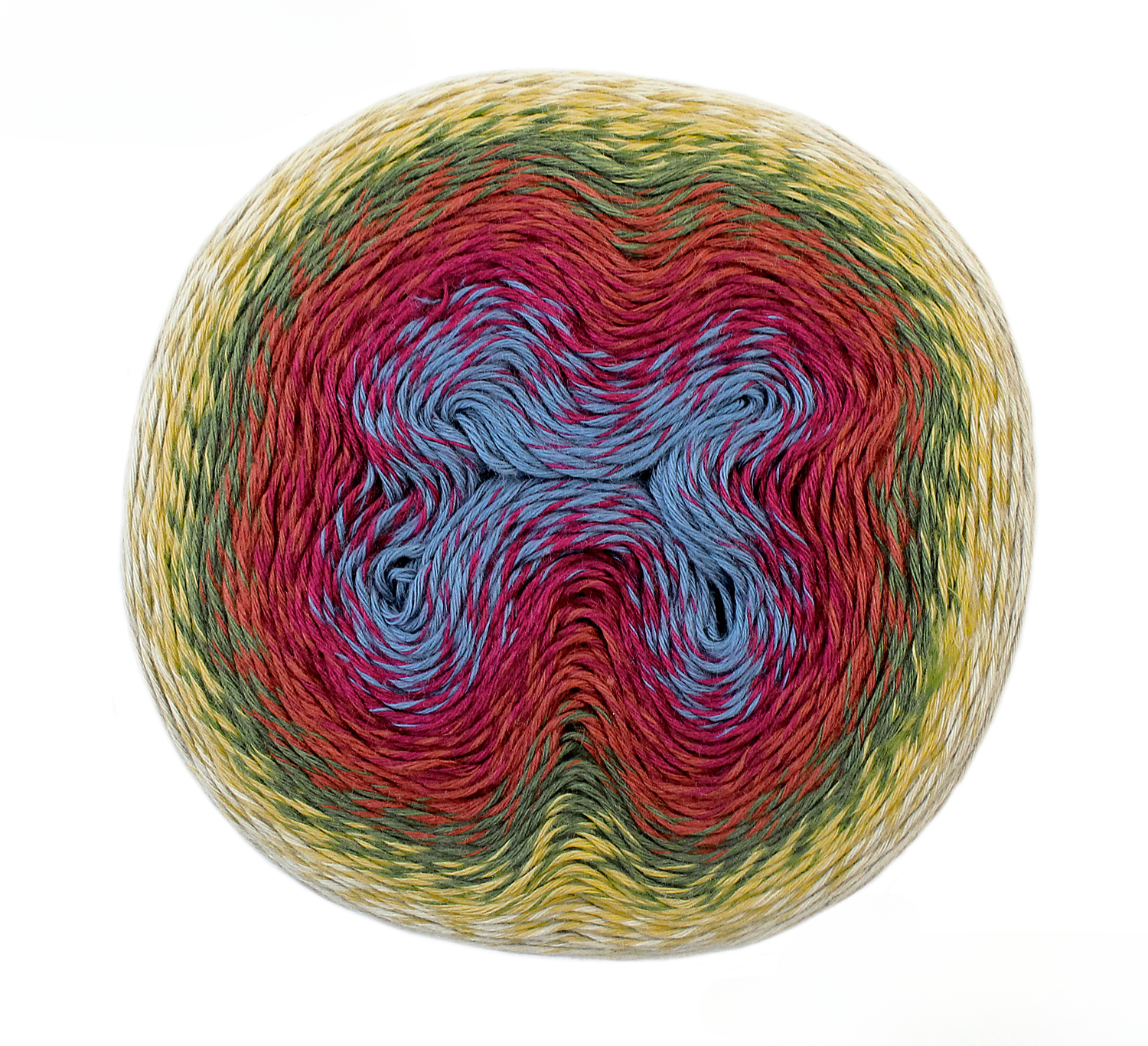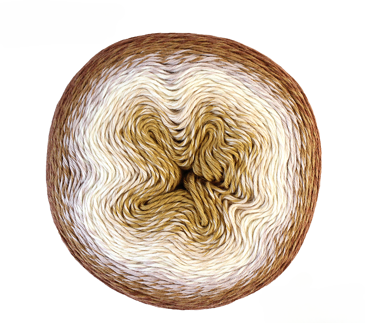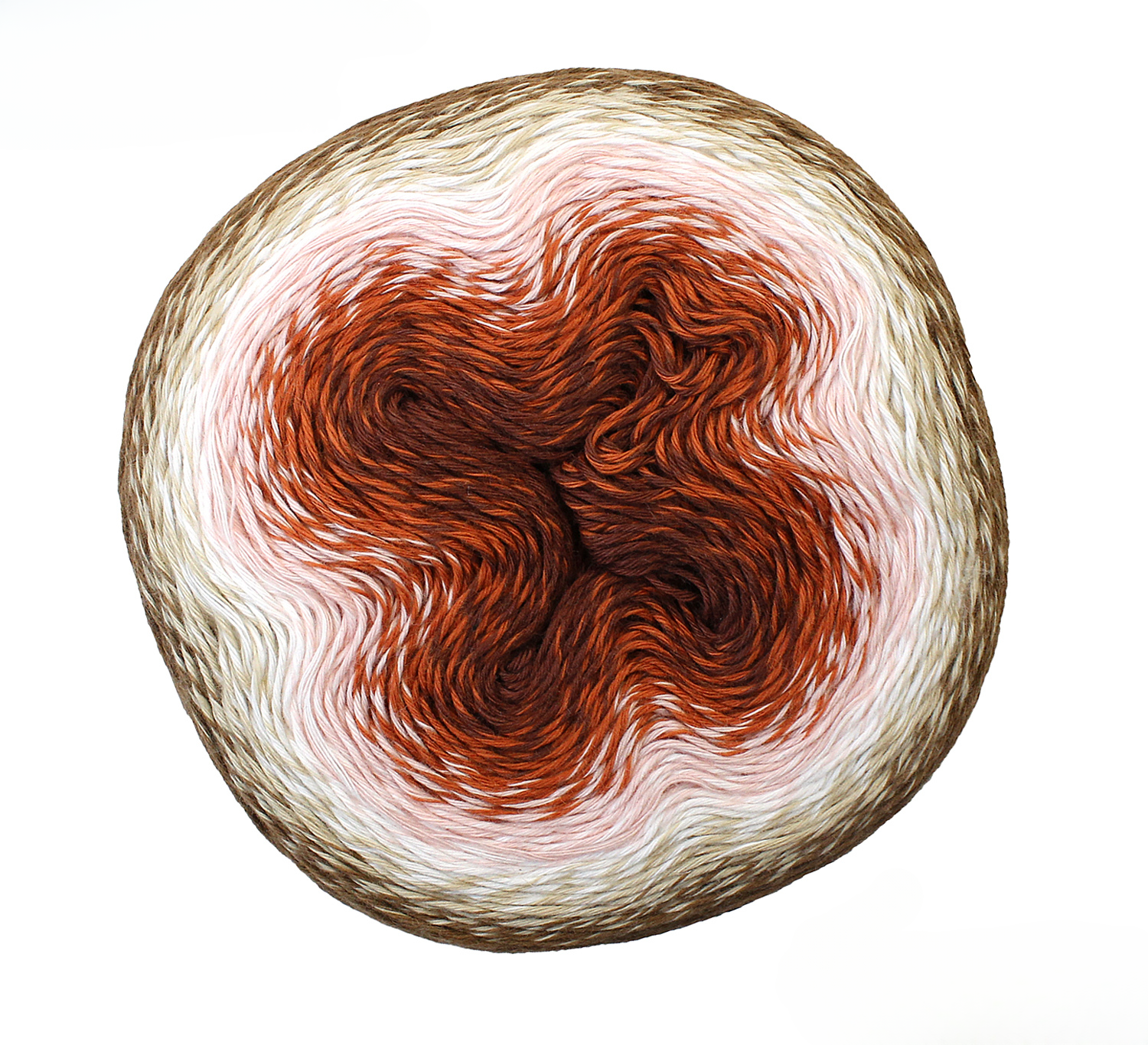 Scheepjes Whirl is a delicious gradient yarn from Scheepjes and comes in 54 scrumptious colour ways. Made from a blend of 60% Cotton / 40% Acrylic to produce projects that are lightweight and breathable. Unlike other gradient yarns, Whirl has a generous twist to enable speed while working the yarn and to help prevent splitting. The beautiful drape of this yarn makes it perfect for shawls, accessories, garments and stylish home décor projects. Whirl has a unique twisted plied section, which gives it a characteristic ‘flavour’ all of its own! The Extra Large yarn cake holds an enormous 1000 meters of softly colour changing yarn, more than enough for a large shawl or wrap. Each colour change is carefully tied in an optimum way to ensure the knot can be discreetly hidden within your stitches.
